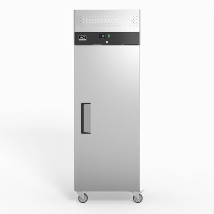 Made from high-quality stainless steel with a self-closing door and fan-forced ventilated cooling, this unit is designed to maintain efficient temperature control. The castor wheels ensure easy manoeuvrability, and the lockable door helps contents remain secure during closing hours. Offering 600L of storage, each of the five adjustable shelves has room for 2x GN1/1 trays or pans.