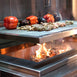 - Cantilevered grill frame lifts vertically to allow clear access to firebox