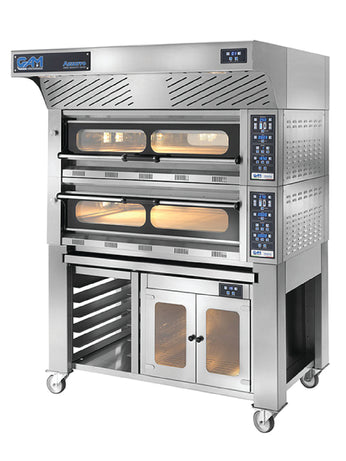 Azzurro is a professional pizza deck oven series that has been designed around the needs of the modern pizza baker who has limited working space but large production demands thansk to the upwards opening door that allows shorter shovel work. They are completley modular and can be stacked up to 3 units high. As a professional oven, the azzurro series comes complete with a full suite of addiional options. The Azzurro 4 is distinguished by its 4 pizza capacity.