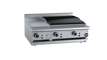 B+S Black Combination 300mm Grill Plate 600mm Char Broiler Bench Mounted BT-GRP3-CBR6BM