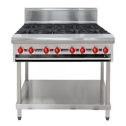 The Boiling Top Series is designed for heavy-duty use and performance in a commercial kitchen. The freestanding boiling top features 6 x 303mm open burners, and the cast iron trivet is reversible to accept flat pans or woks.