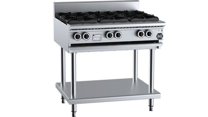 The B+S Black Boiling Tops incorporates a solid stainless steel frame that is built to last. The unit also features an open stand and undershelf, which is ideal for storing cooking utensils.