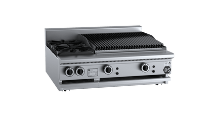 B+S Black Combination Two Open Burners 600mm Char Broiler Bench Mounted BT-SB2-CBR6BM