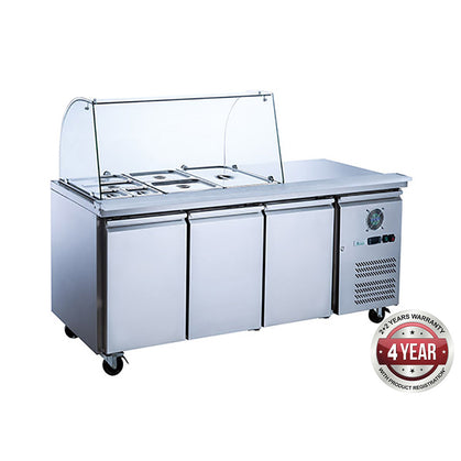 FED-X Three Door Salad Prep Fridge with Curve Glass Top - XTHP3100SALGC