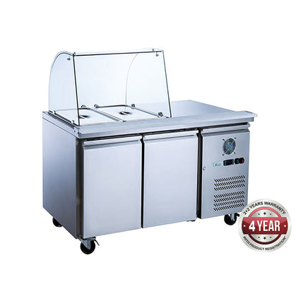 FED-X Two Door Salad Prep Fridge with Curve Glass Top - XTHP2100SALGC