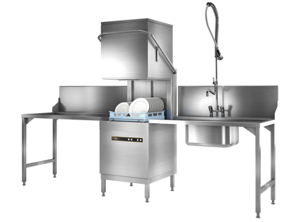 The dishwasher for ergonomic and efficient work processes in the kitchen. Combined with tables, it is a powerful partner for the catering and hotel sector.