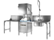 Hood-type dishwasher for straight through or corner operation
