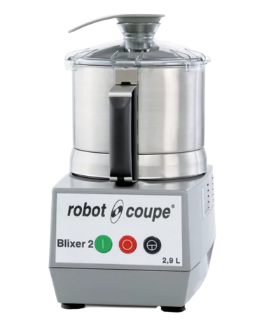 Blixer 2. Single phase. Power: 700 W. Speed: 3,000 rpm. 2.9-l stainless steel bowl with handle, plus bowl-base, fine-serrated, twin-blade assembly. Totally leak proof lid with scraper arm. Special single-portion model.