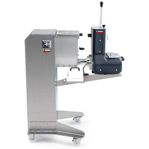 The Orchestra 10 is a freestanding pasta making machine with a Ø 110 mm die and is suitable for small workshops and large restaurants or canteen. It has a self-supporting structure with 4 stainless steel wheels. It is a high-performance machine with a powerful, air-cooled motor with oil bath gear box reducer. The forced air-cooling system ensures it is capable for heavy-duty use. Comes with IP67 controls and a large range of dies and extra accessories including the Raviomatic and an optional pasta cutting attachment also. It is a heavy-duty unit designed for larger applications of pasta supply. The Orchestra 10 2V has a 3-phase supply inverter controlled motor allowing the machine to run off a convenient single phase 10 amp plug. It has a 21-litre hopper with 9.8kg batch capacity.