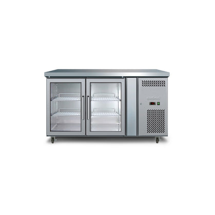 Bromic UBC1360GD-NR 417L 2 Door Glass Under Bench Display Chiller is designed to slot seamlessly underneath an industry-standard bench. Powerful fan-forced cooling ensures even air circulation to keep food and beverages at optimal temperature.