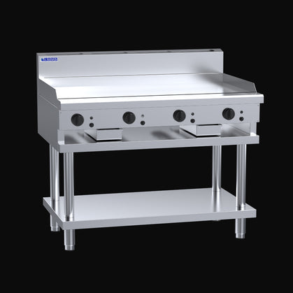 The CS-12P 1200mm wide griddle plate ensures ample heat from the burners is spread evenly across the 21mm thick mild steel surface, all within a compact 800mm deep unit. Available as a benchtop or freestanding with an undershelf storage area.