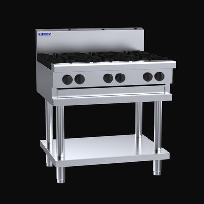 Engineered to higher specifications, the CS-6B unit is a 900mm wide, compact high performance six burner cooktop. Available as a benchtop or freestanding with an undershelf storage area.