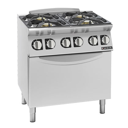 - 700 series, high performance open burners (28.8 MJ/h each) and oven