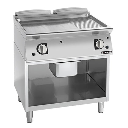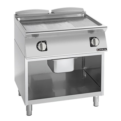 Giorik 900 Series 800mm wide Half Ribbed Half Smooth Frytop on Open Base