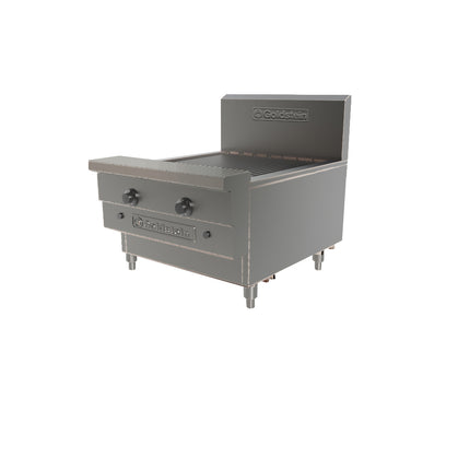 - heavy duty cast iron reversible grates provide greater control when cooking and energy efficiency