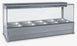 Double row hot food display bar, stainless steel construction with tubular frames, energy regulator control, Dura life stainless steel elements, wet or dry operation, easy to clean, overhead heating and illumination, safety lock ball valve drain, removable cross bar & thermometer. Comes with 10 x 1/2 size 65mm pans.45lt