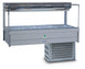 Square glass cold food display bar, cold plate and cross fin coil cooling, designed to take a variety of gastronorm pans up to 65mm deep, stainless steel construction with tubular frame, runs on environmentally friendly R404A refrigerant, overhead fluorescent light, safety lock ball valve drain, removable cross bars, easy to clean, toughened safety glass front, rear roller doors. Comes with 8 x 1/2 size 65mm pans.36lt