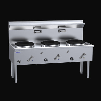 Performance meets style in an incredibly compact 800mm deep unit! Ideal where kitchen space is a premium, the WZ-3C three hole compact waterless wok comes with three 110mj chimney burners and an innovative 'air gap' cooling design.
