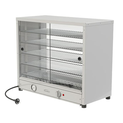 Crafted specifically for holding and displaying pies, the Woodson Pie Display features toughened glass for front and rear sliding panels. Together with a double skin stainless steel cabinet, this unit is extremely durable. A manual thermostat control allows the unit to be set to a specific temperature, while a temperature gauge monitors and displays the temperature. Simple and straight forward, this pie display delivers quality results, while maintaining a sleek, attractive appearance.