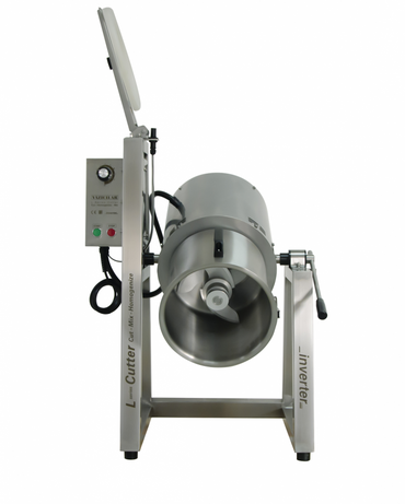 The Yazicilar floor standing vertical cutters are designed for those wanting to achieve greater capacity with fewer machines.Their robust construction and the heavy-duty design promises longevity. The four-blade full stainless steel patented knive promises great performance in short time. The upper blades process the upper half of the bowl while the lower blades process the lower half ensuring the product is evenly processed in the shortest possible time whilst avoiding overheating and the spoiling of the end-product. You can prepare purees, hummus, and process all kinds of organic material with ease using this state-of-the-art floor standing cutter. The precise direct drive design ensures a noiseless and powerful operation that can chop delicate items such as onion, garlic, tomato, parsley, and pepper into desired thickness without squashing them and without removing their juices or integrity. These vertical cutters are completely tiltable for easy product unloading and the bowl easily removable for cleaning. Yazicilar vertical cutters utilise an inverter that allows a stepless variable speed operation where you can vary the speed of the blades for every application and process. During the process, you can change the speed for another phase of the processing allowing complete control. The reverse function on these cutter processors also allows the end user to mix products using the back of the blade without cutting them. The L20IV is distinguished by a 20-litre bowl capacity and a unique single phase operation allowing it to be plugged and used anywhere.