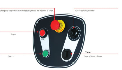 - The control panel, located on the head of the machine, is equipped with intuitive and easy-to-use controls and come standard with a timer.