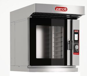 The TEOREMA ÀNEMOS convection combi oven series satisfies all the needs of high-end pastry and bakery kitchens. Ideal for small and medium-sized production, it lends itself to the cooking of any type of product from profiteroles to sponge cake, croissants, tarts, macaroons, small or medium-sized bread and multiple expressions of international gastronomy. Cooking takes place by means of a heated air flow sent into the chamber by means of two fans (TEOREMA ÀNEMOS 6) or three fans (TEOREMA ÀNEMOS 10). The homogeneity of the air flow, thanks also to the automatic fan rotation inverter, allows a constant distribution of heat, giving the product a regular cooking at every point. Convection allows you to reduce time and lower the cooking temperature, resulting in energy savings. Available in two configurations, touch screen and electromechanical. The touch screen features a core probe which allows you to set and control the temperature at the very core of the product and comes standard with self-cleaning function. The Teorema Anemos 6 Touch is distinguished by its 6 tray (600 x 400) capacity and touch screen fully functioned operation.