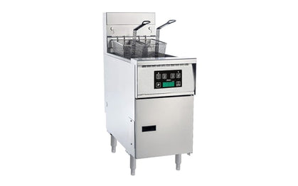 The patented burner incorporates a daily self-cleaning cycle, keeping burners tuned to operate in the most energy efficient manner. Cooking capacity of approximately 20kg of frozen 10mm fries / 24kg of frozen french cut fries per hour per tank.