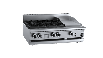 B+S Black Combination Four Open Burners 300mm Grill Plate Bench Mounted BT-SB4-GRP3BM