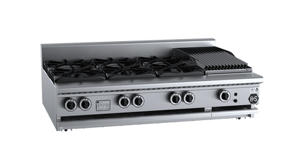 B+S Black Combination Six Open Burners 300mm Char Broiler Bench Mounted BT-SB6-CBR3BM