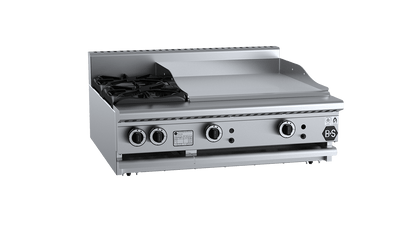 B+S Black Combination Two Open Burners 600mm Grill Plate Bench Mounted BT-SB2-GRP6BM
