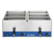 Safe – heat resistant ABS control dials, insulated faucet handles, user resettable push button over temperature cut out, and non-slip rubber feet and pans must sit in 30mm of water as the water is heated which in turn heats the pans. Drain tap for fast, safe cleaning.