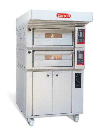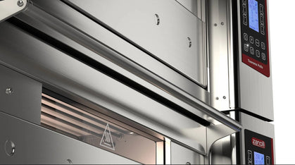 TEOREMA POLIS is the pioneer of modular multi-function deck ovens. Designed and patented in 1982, it represents the synthesis of the knowledge developed by Zanolli in the field of modular static ovens. Since the first model was designed and patented in 1982, the Teorema range has delivered superb results in successful kitchens all over the world. Designed for cooking pizza, bread and for pastry making, these ovens are sophisticated without compromising simplicity of use. Performance is excellent due to new electronic operating systems with safe and easy to use controls. Thanks to its natural versatility, Teorema Polis cooks any product evenly, emulating a wide range of cooking standards. You can decide whether to bake in a baking tray or directly on the oven base and, in this case, opt for the base of the cooking chamber in refractory material. Depending on your needs, you can add a range of accessories including an extractor hood, leavening cell, steam generators and bread batch frames to name a few. The Polis comes in two chamber height sizes a 180mm and a 300mm for higher products and is completely modular so it can be stacked up to 4 high in any chamber height combination. The Polis 2/MC18 is distinguished by its 2 tray (600 x 400) capacity and 180mm chamber height.