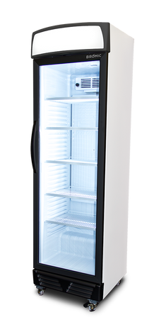 Upright Display Fridge - 372L - 1 Door - Flat Glass - White with Black Details