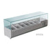 This sandwich prep top can store your ingredients with spaces fit for gastronorm pans. This area is easy to reach, so you can throw ingredients onto your dish as you move it along the wide, stainless steel bench.